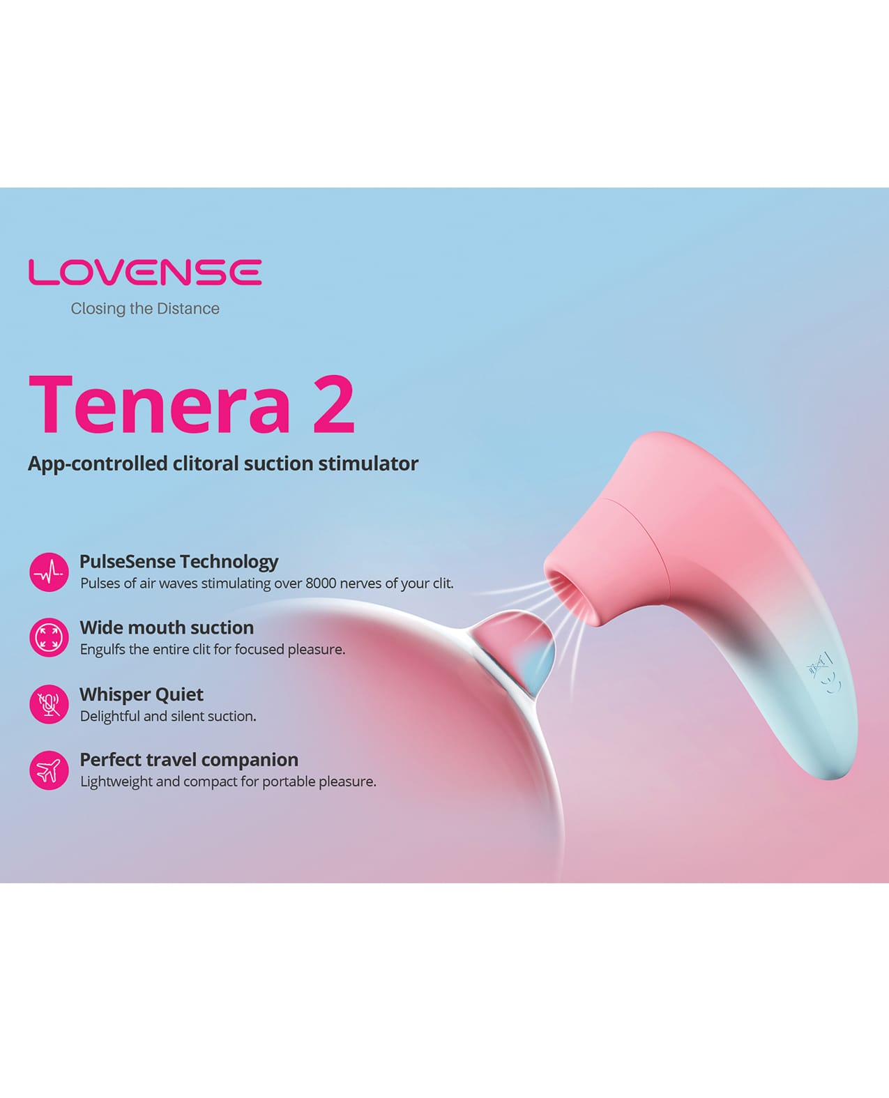 - Công nghệ PulseSense bùng nổ khoái cảm: Các sóng xung động tạo ra cảm giác hút-nhả chân thực, máy rung massage hạt “đậu le” Lovense Tenera 2 hứa hẹn kích thích 8000 dây thần kinh ở cô bé, cho chị em cảm giác lên đỉnh khoan khoái. Tenera 2 cũng có thể được sử dụng khi chơi đùa với 2 trái đào tiên với tác dụng tương tự.